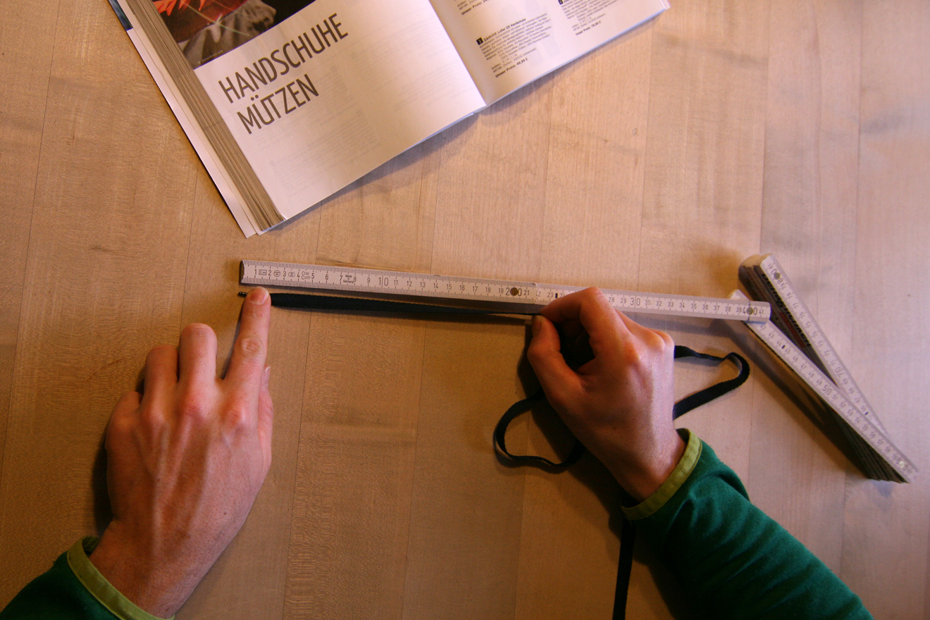 Place the tape measure or measuring device in the centre of your hand, e.g. below the knuckles and above the thumb crease – with the hand being open and slightly bent. The tape should be loose but not slack, it should sit at the widest point. Be careful with elastic, try to avoid stretch fabric tapes for measuring. By now, you should have your hand circumference or alternatively the length of the measurements taken from a ruler. With the help of the centimetre measurements you’ll now be able to find out what size glove you wear.
